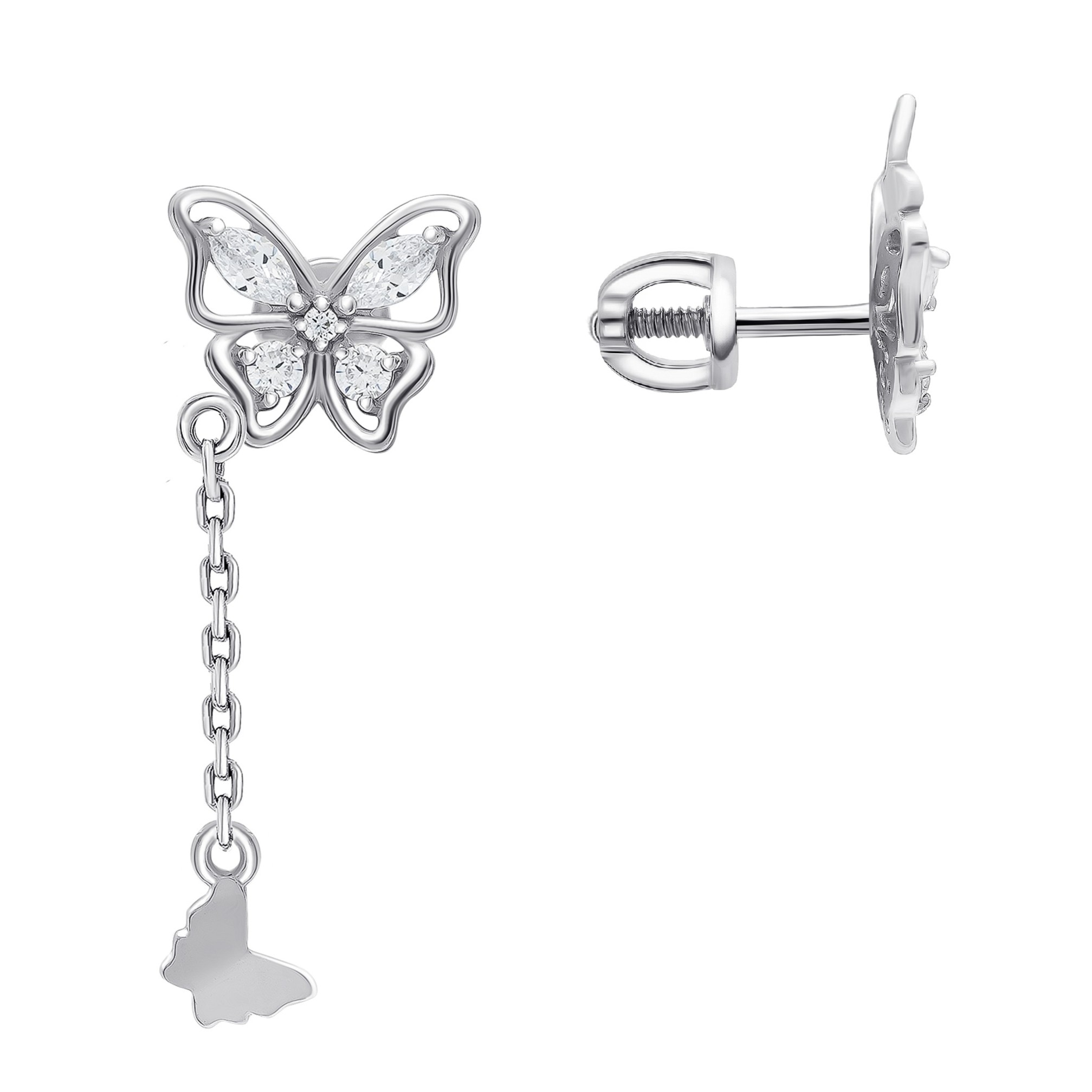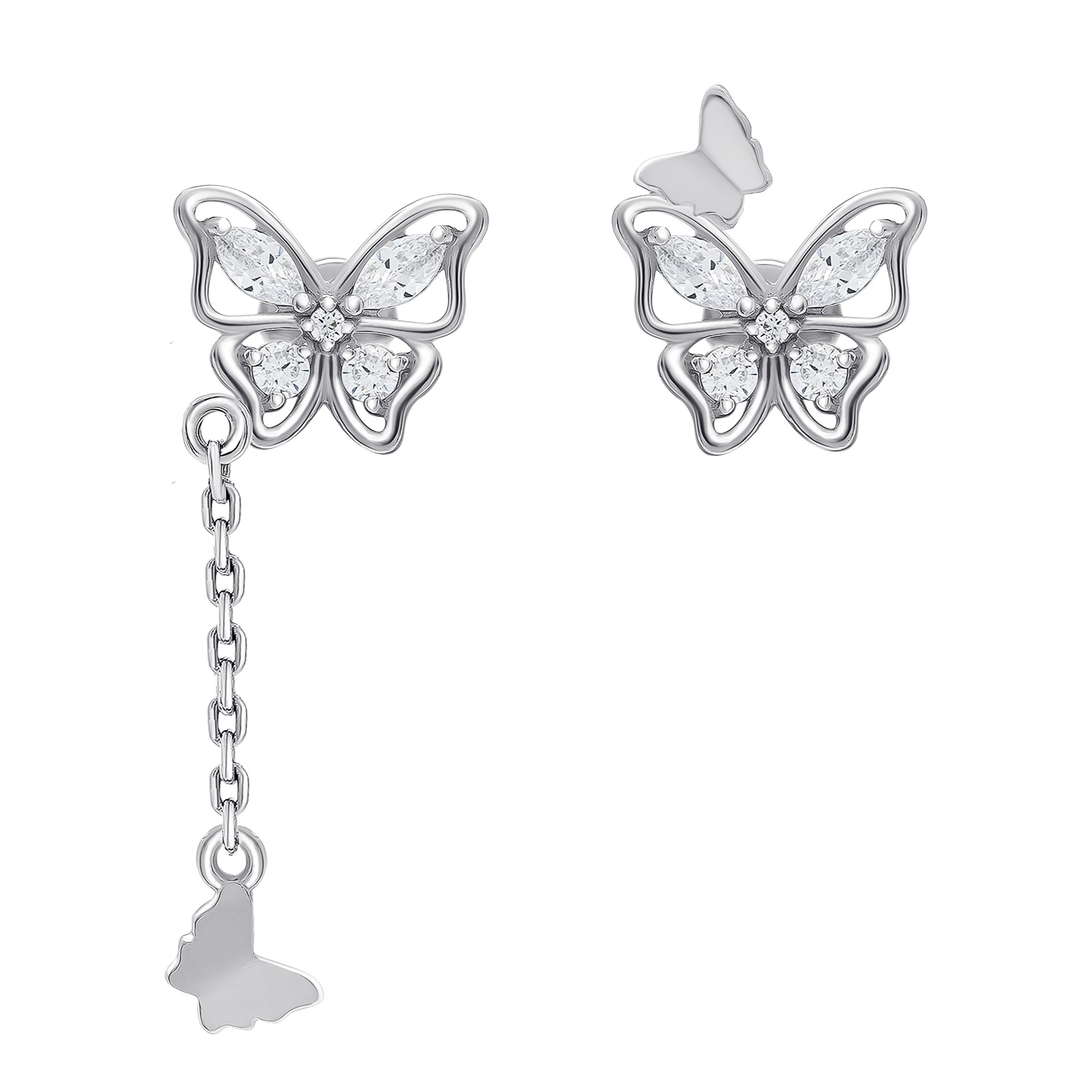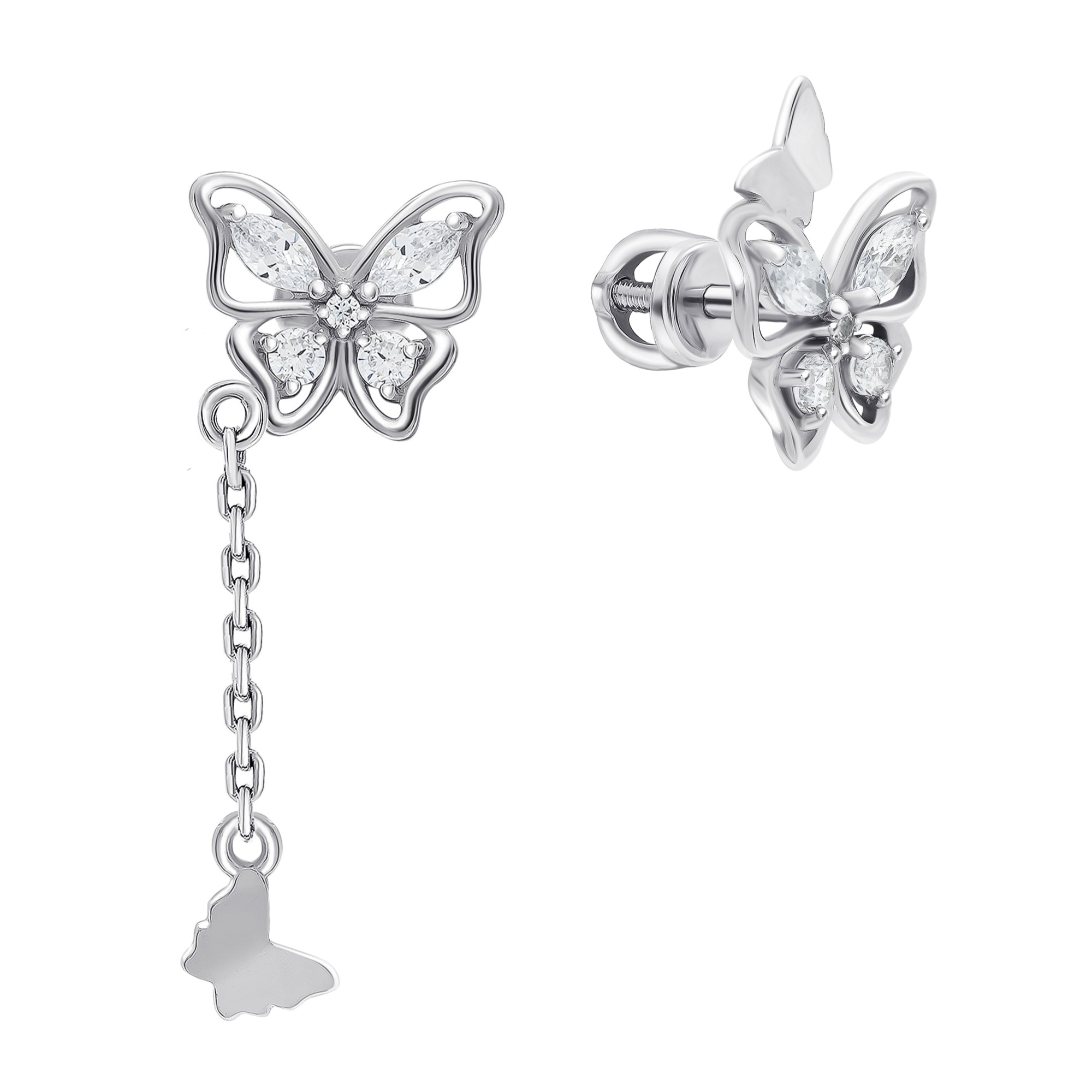 Асимметричные серьги из серебра с фианитами
