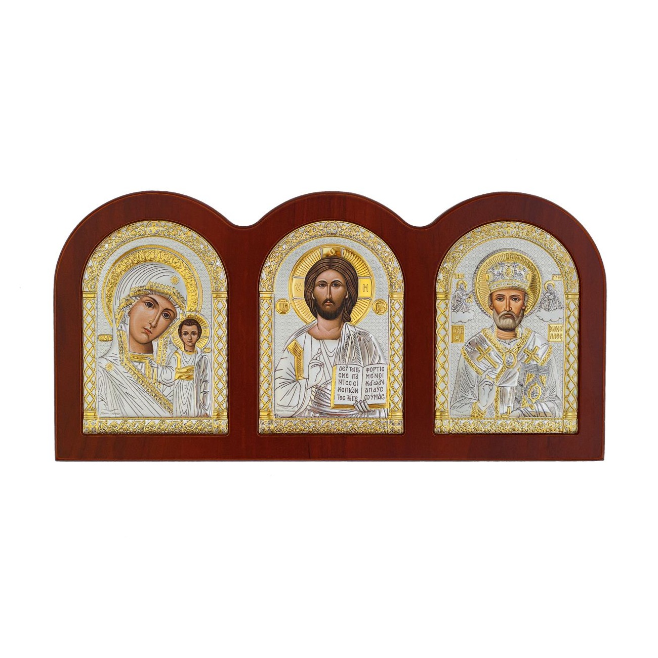 Автомобильная икона с образами "Казанская Божья Матерь", "Спаситель" и "Николай Чудотворец"