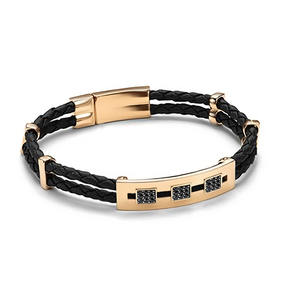 Браслет из золота с кожаными вставками и фианитами