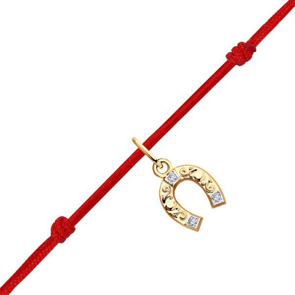 Браслет "красная нить" из золота с фианитами "Подкова"