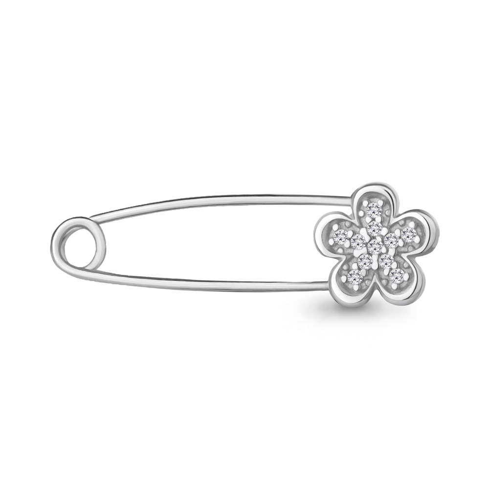 Брошь-булавка из серебра с фианитами