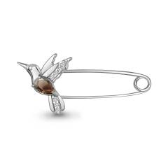 Брошь-булавка из серебра с раухтопазом и фианитами "Колибри"