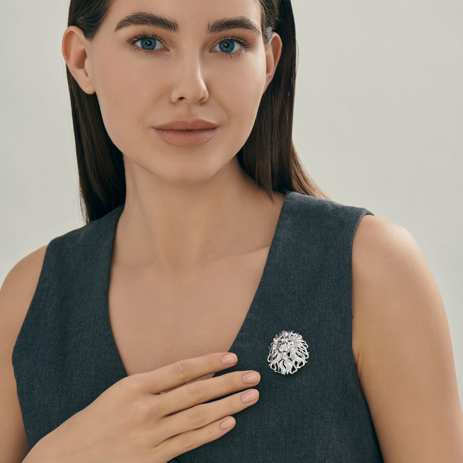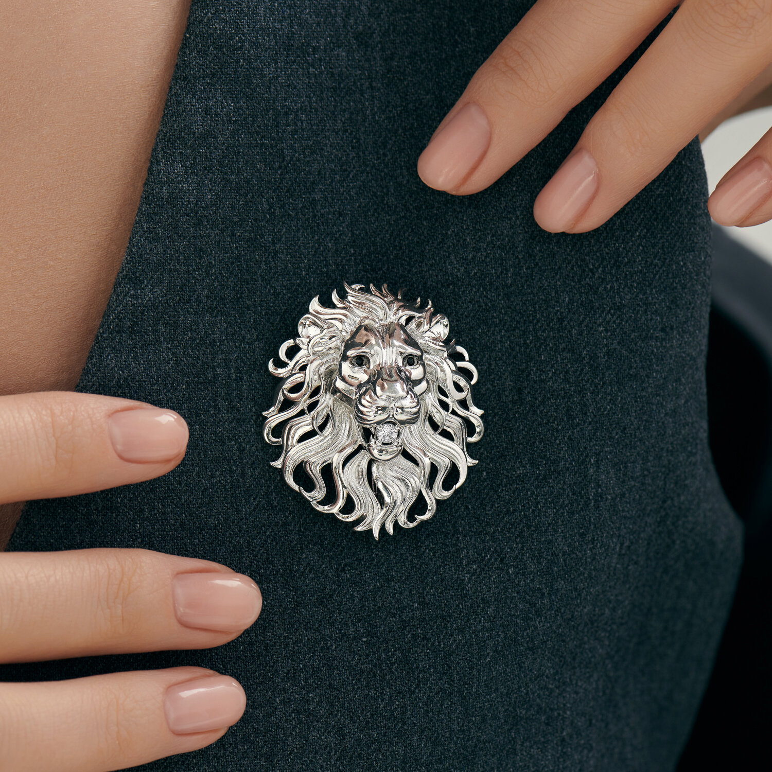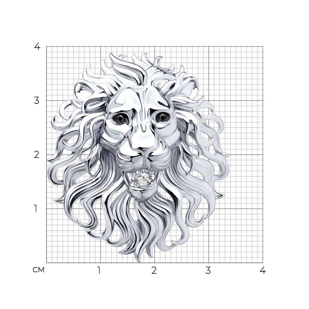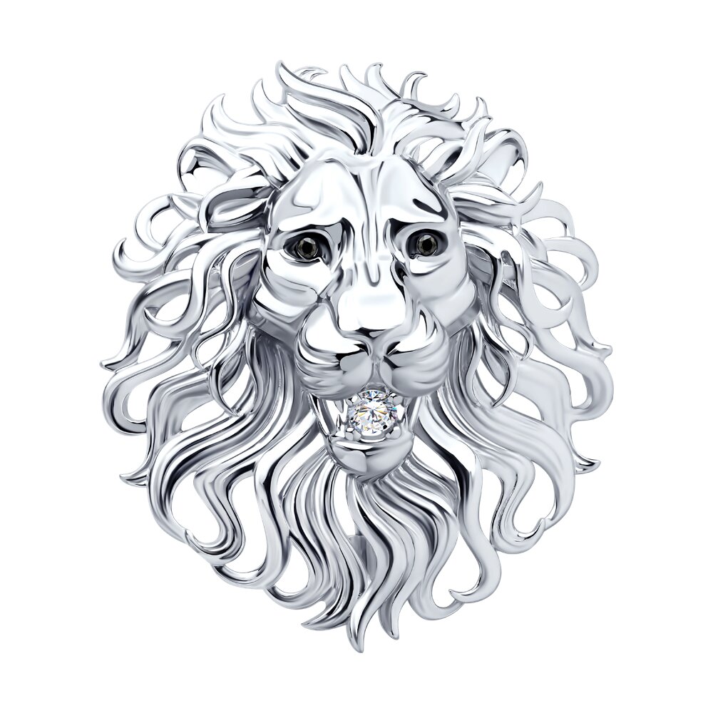 Брошь из серебра с фианитами "Лев"