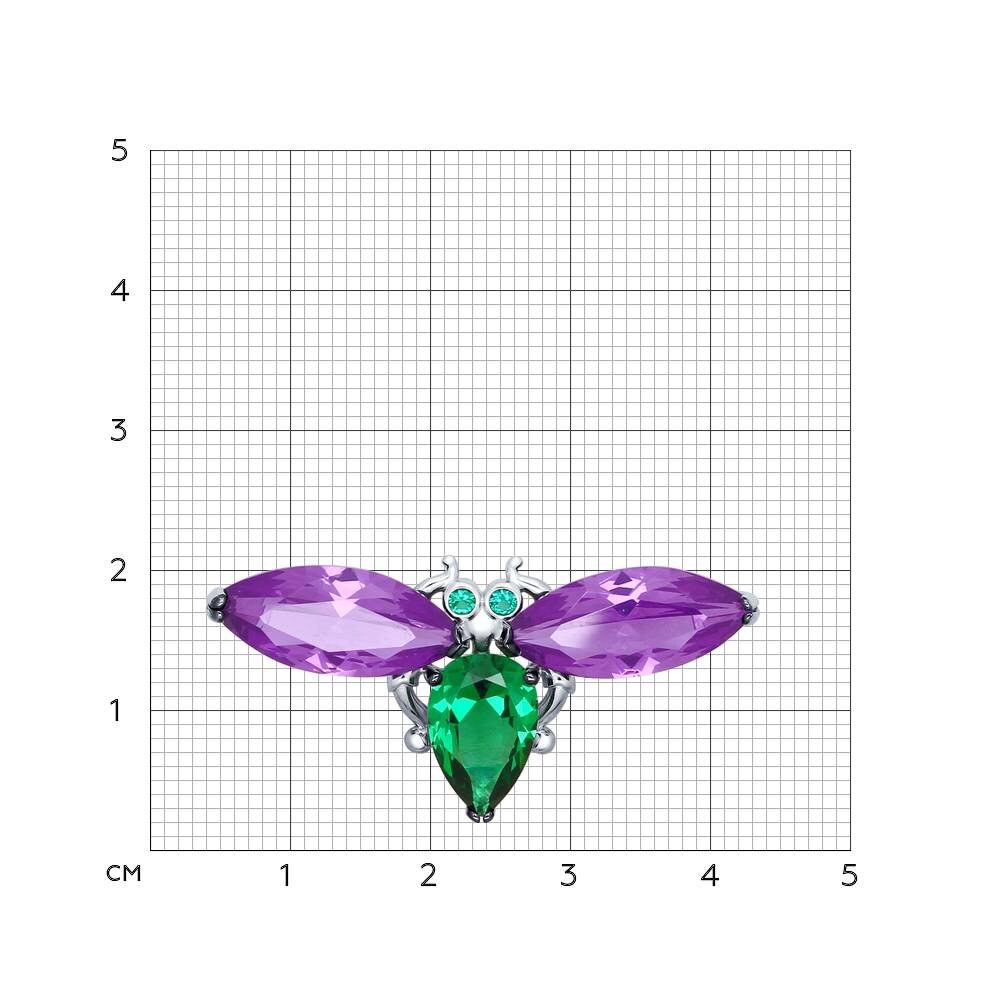 Брошь из серебра с ювелирными кристаллами и фианитами