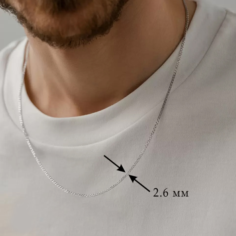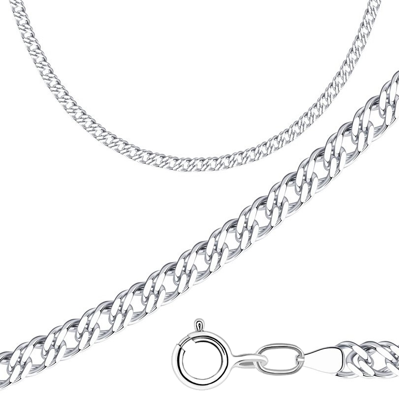 Цепь из белого золота 585 пробы плетения "Двойной ромб"