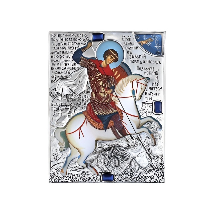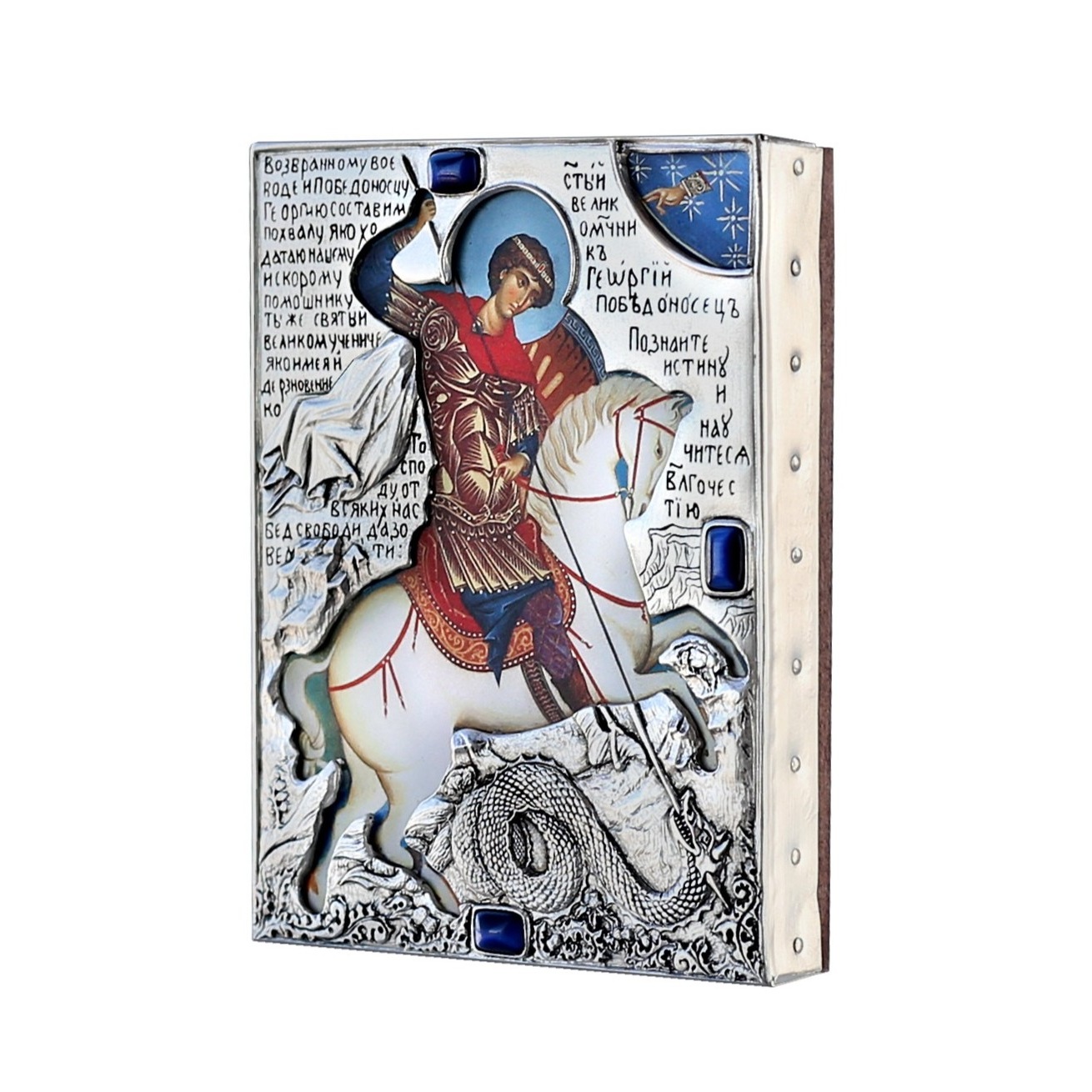 Образ Георгия Победоносца издревле является воплощением героизма и доблести. Величественный лик также дарует защиту воинству и всем людям, оказавшимся в зоне военного конфликта. Особо почитают Святого в русском православии, он также является покровителем Москвы.