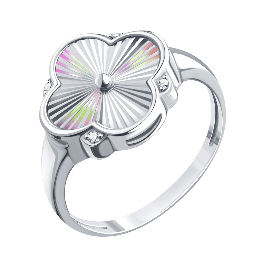 Кольцо из белого золота с алмазной гранью и фианитами