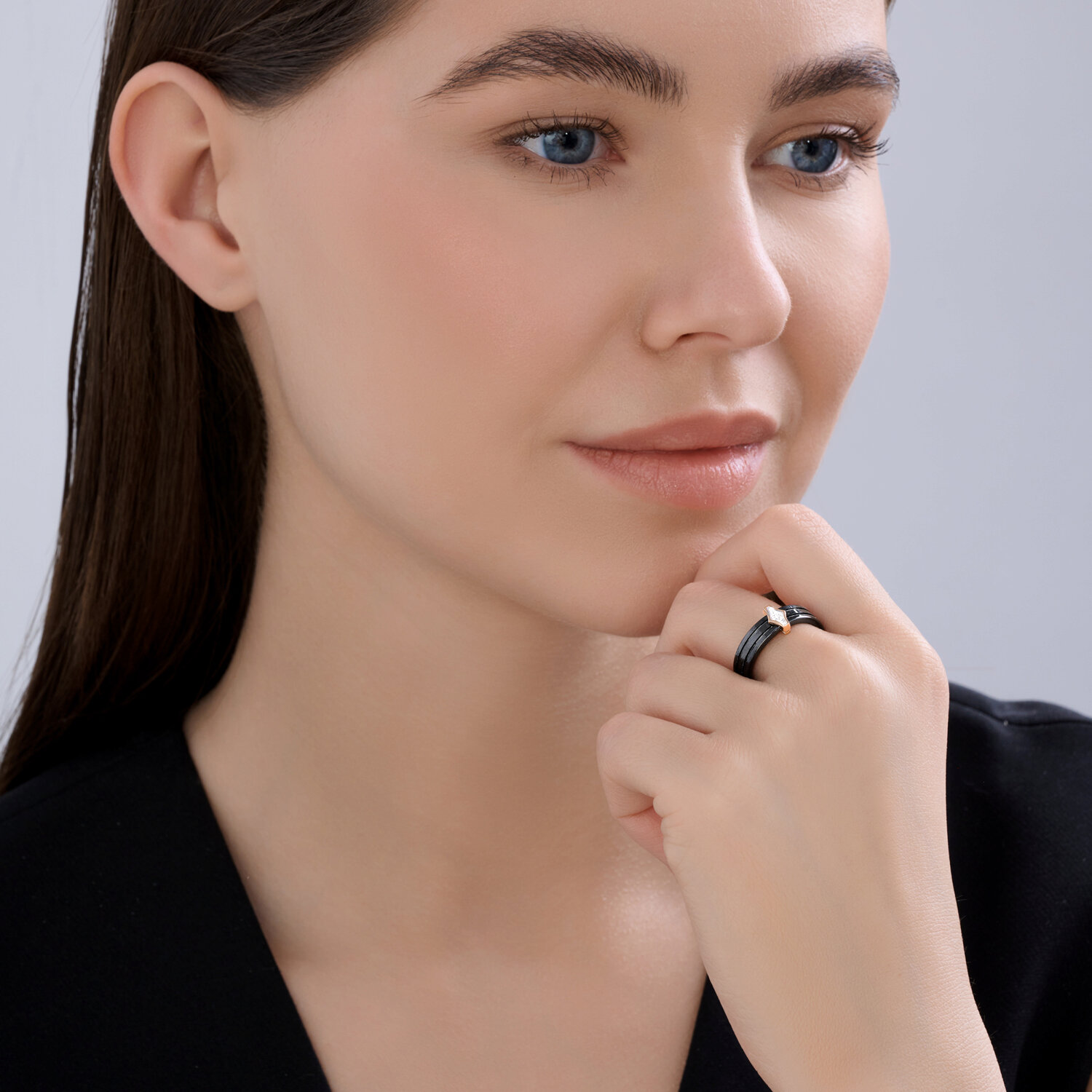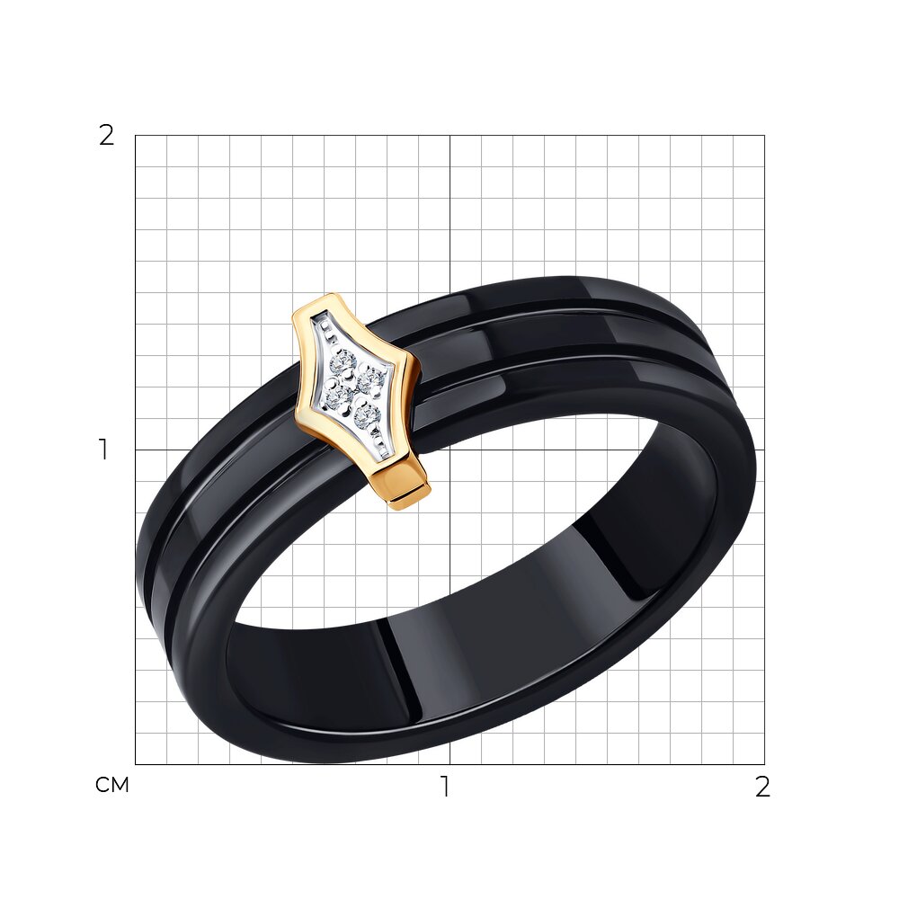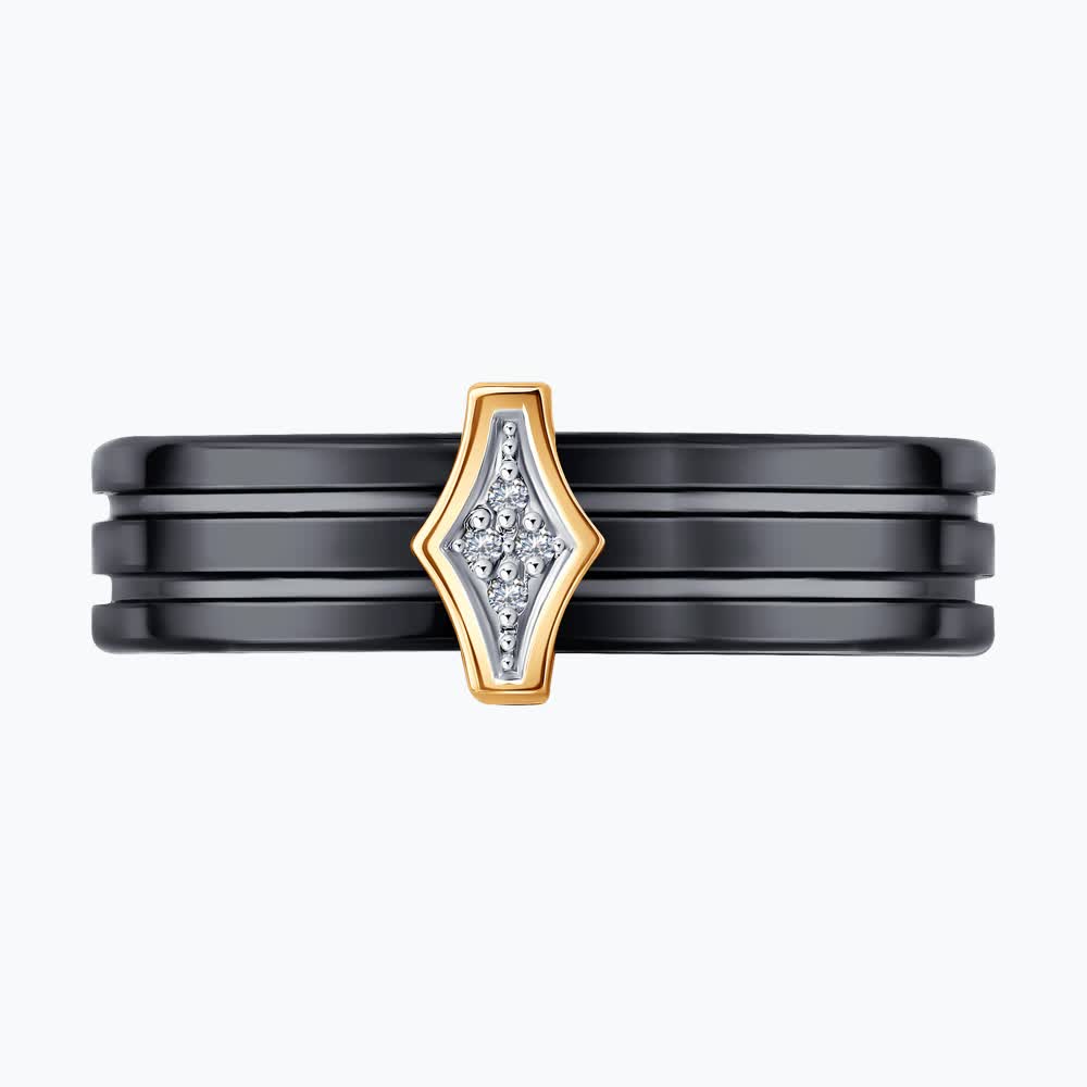 Кольцо из керамики с вставкой из золота и бриллиантами