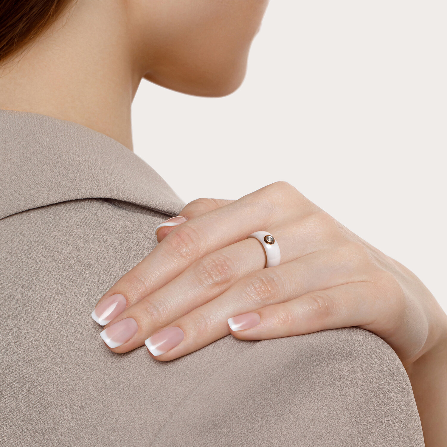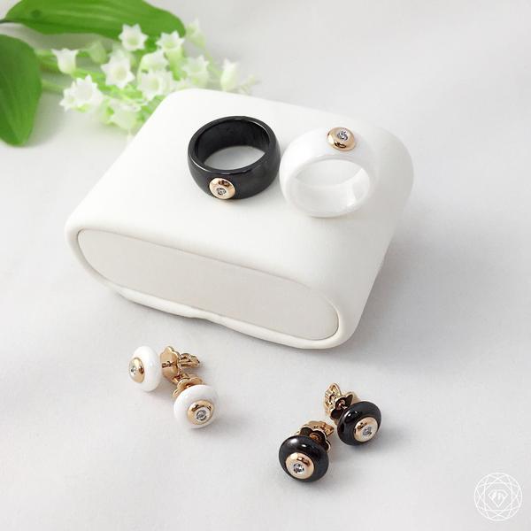 Кольцо из керамики со вставкой из золота и бриллиантом