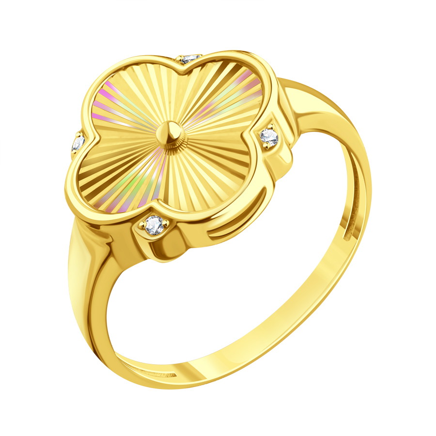 Кольцо из лимонного золота с алмазной гранью и фианитами