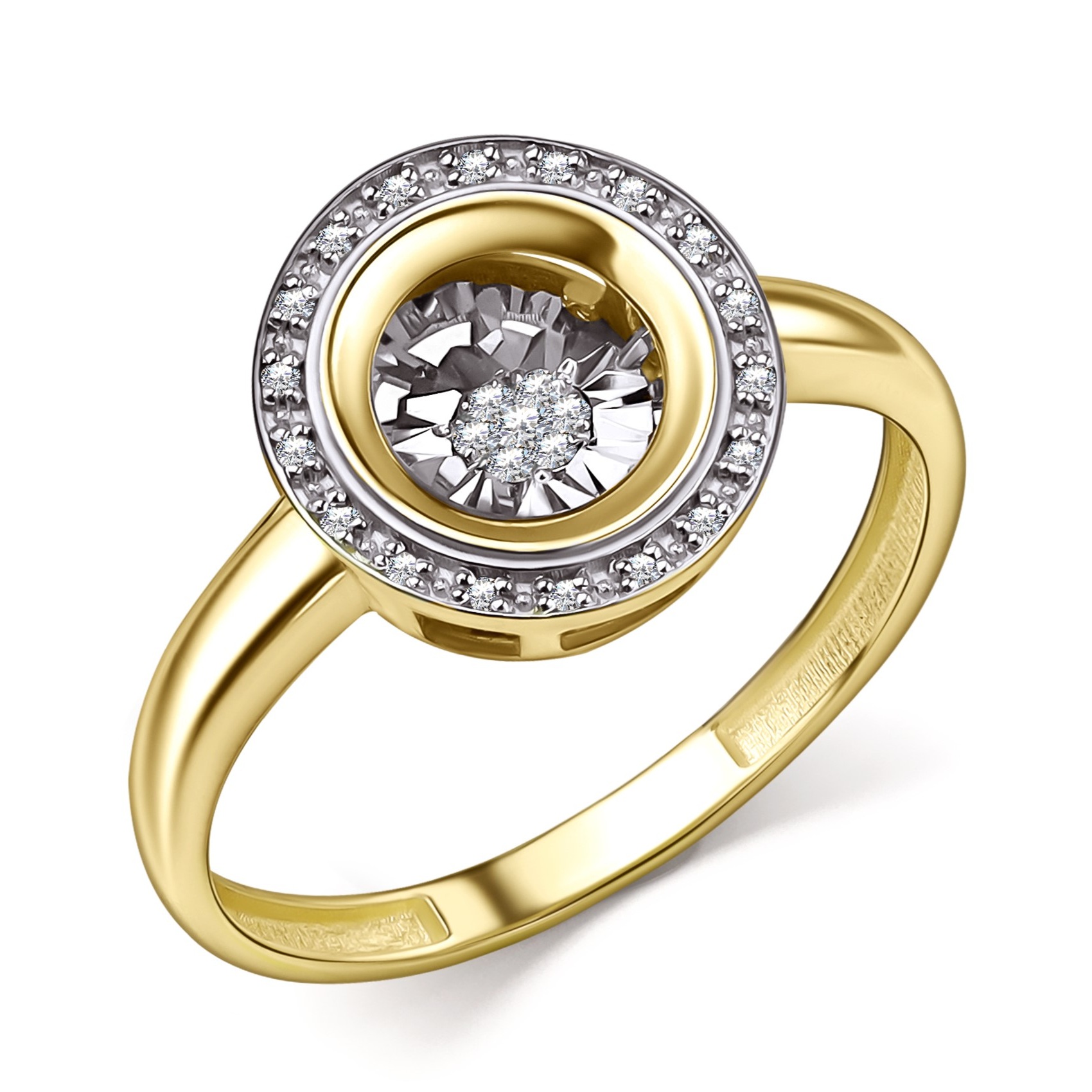 Кольцо из лимонного золота с бриллиантами и "танцующими" бриллиантами