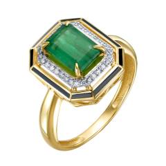 Кольцо из лимонного золота с бриллиантами, изумрудами и эмалью