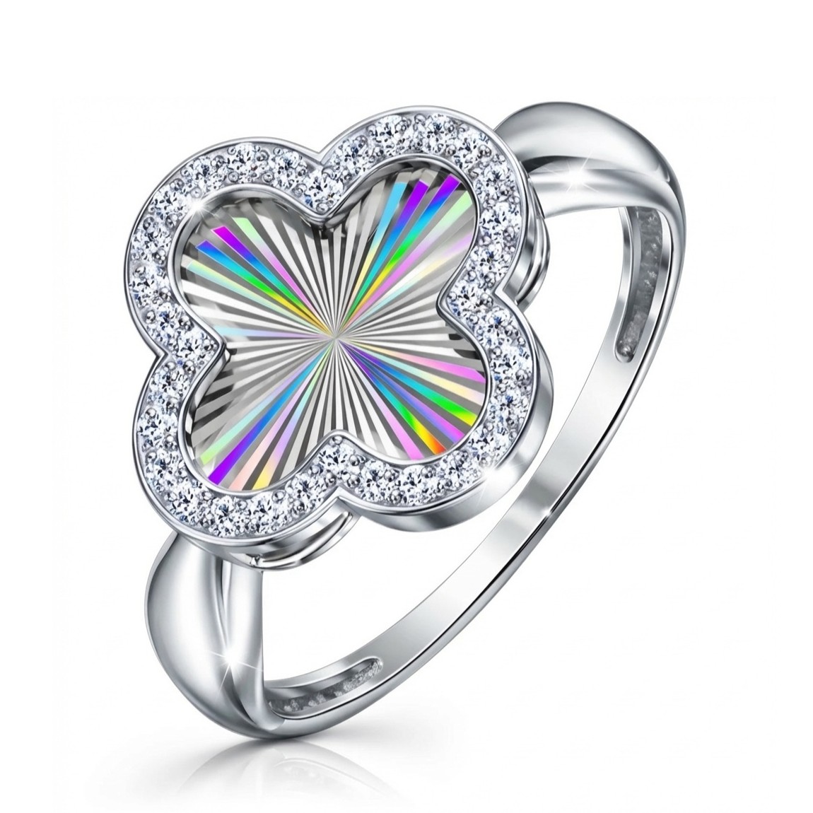 Кольцо из серебра с алмазной гранью и фианитами