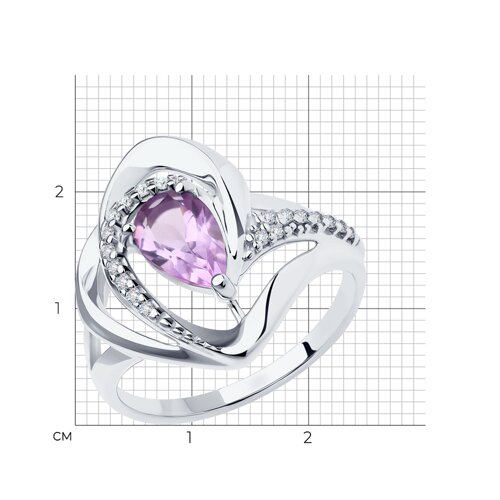 Кольцо из серебра с аметистом и фианитами