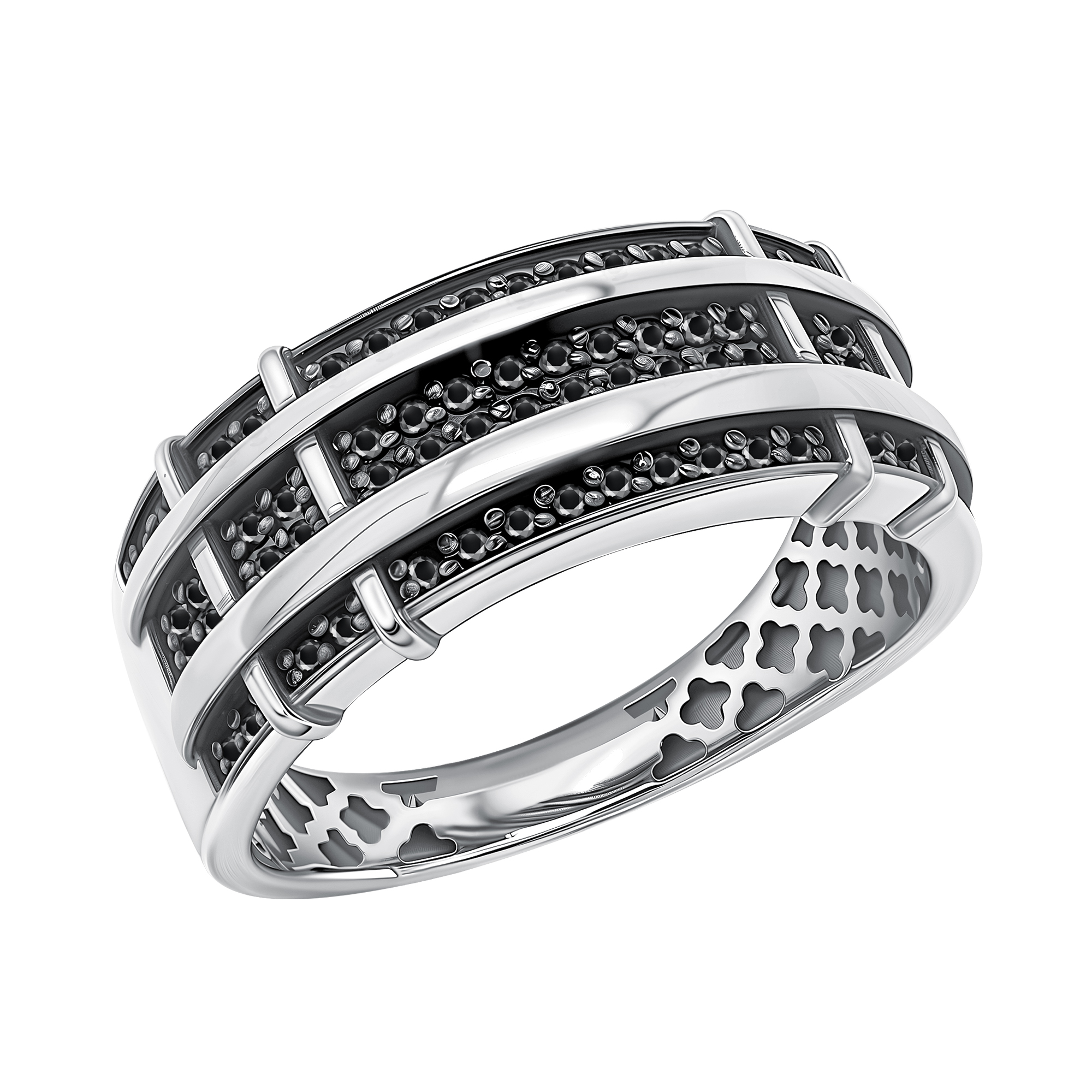 Кольцо из серебра с черными фианитами