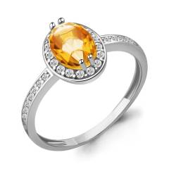 Кольцо из серебра с цитрином и фианитами