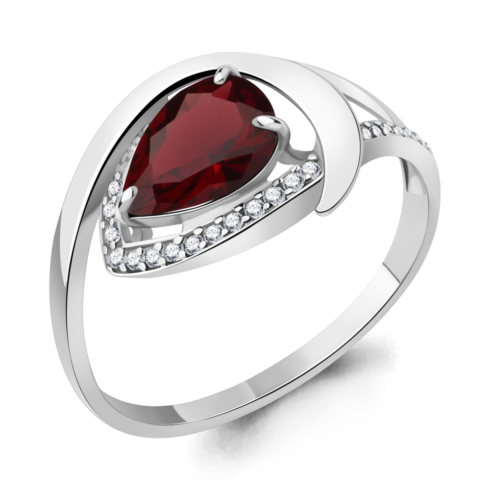 Кольцо из серебра с гранатом и фианитами
