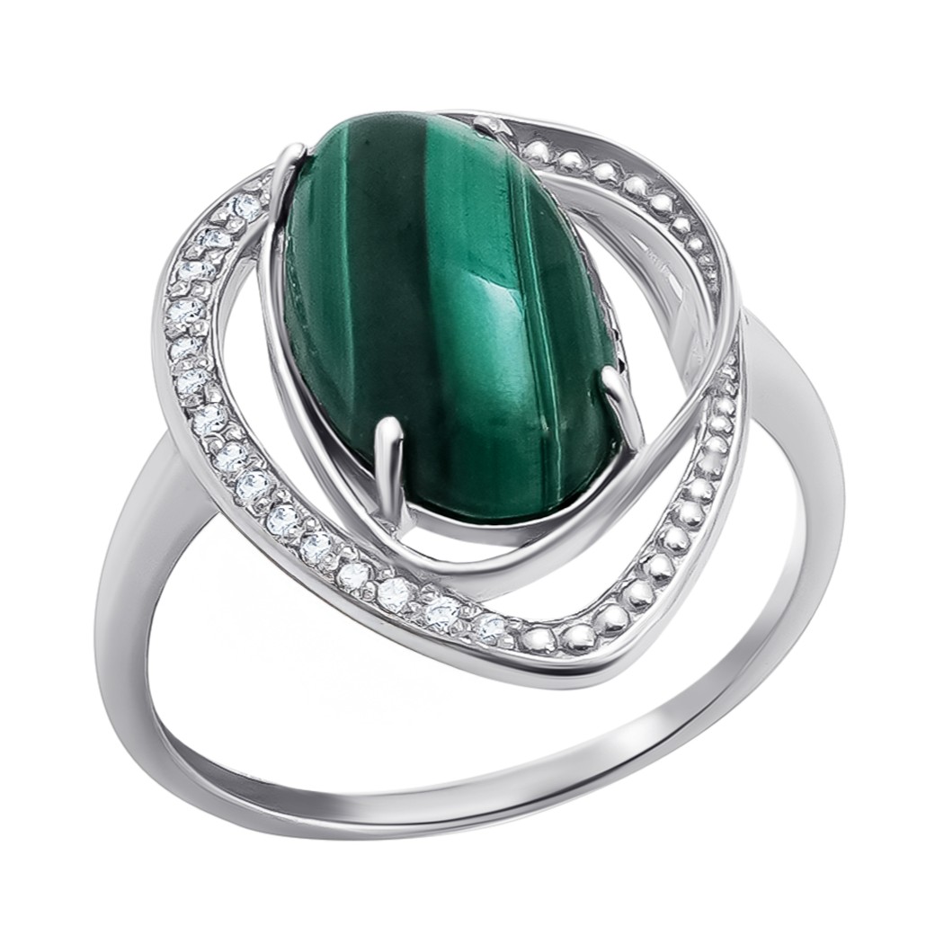 Кольцо из серебра с малахитом и фианитами