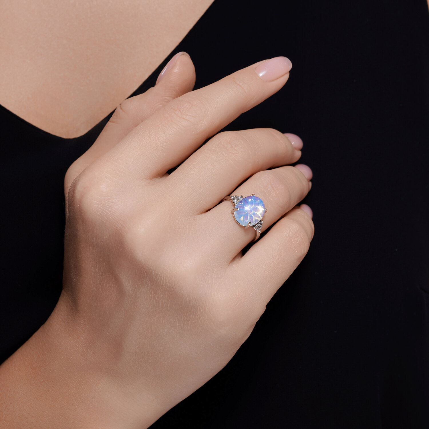 Кольцо из серебра с опалитом и фианитами