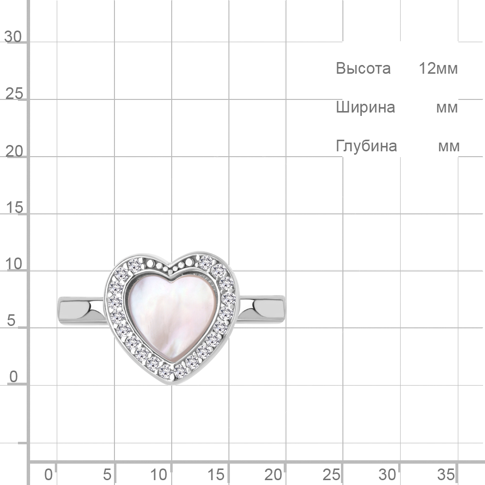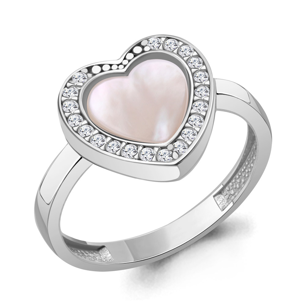 Кольцо из серебра с перламутром и фианитами