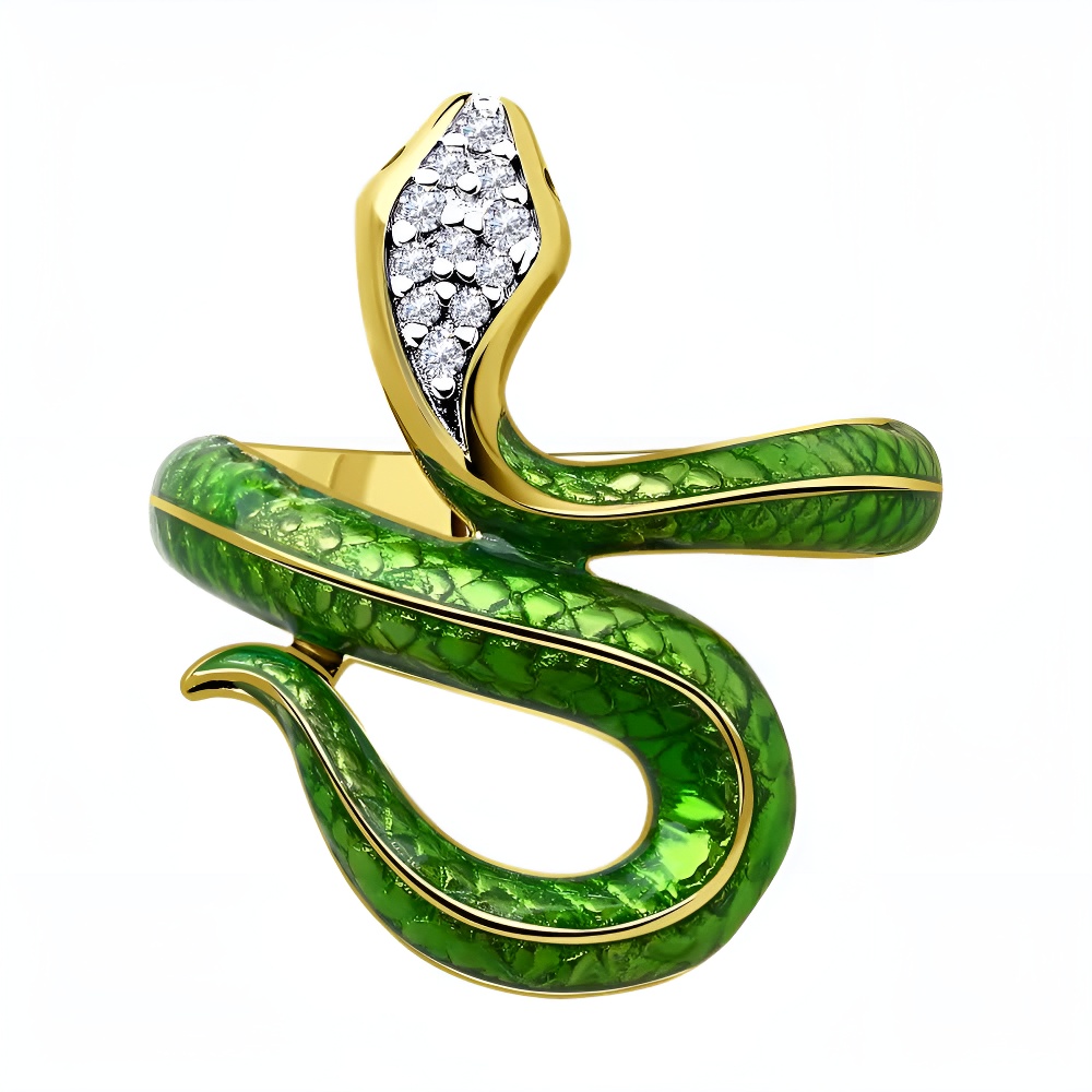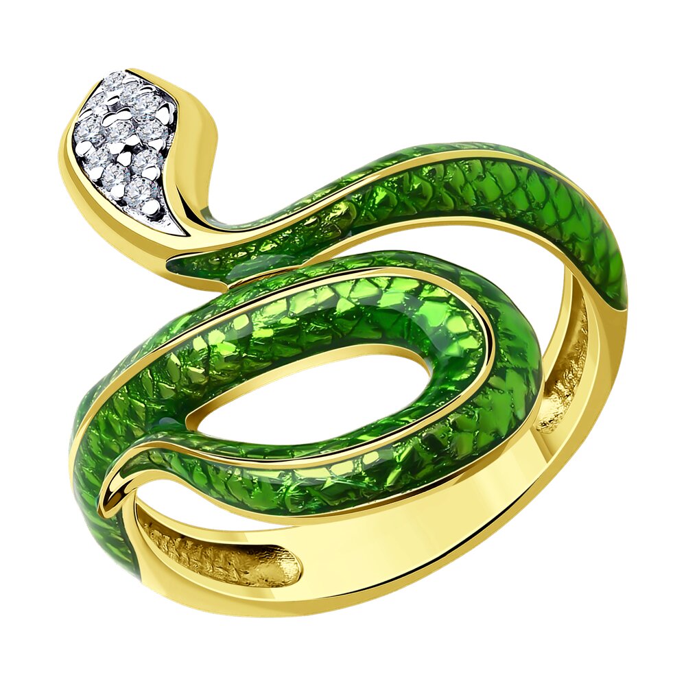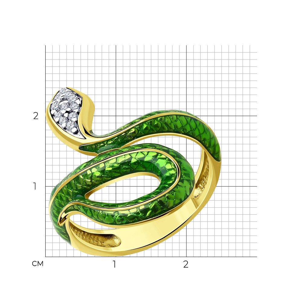 Кольцо из серебра с позолотой, эмалью и фианитами