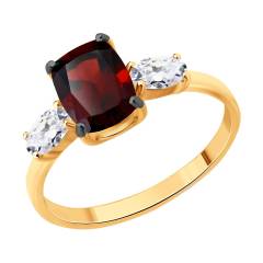 Кольцо из серебра с позолотой, гранатом и фианитами