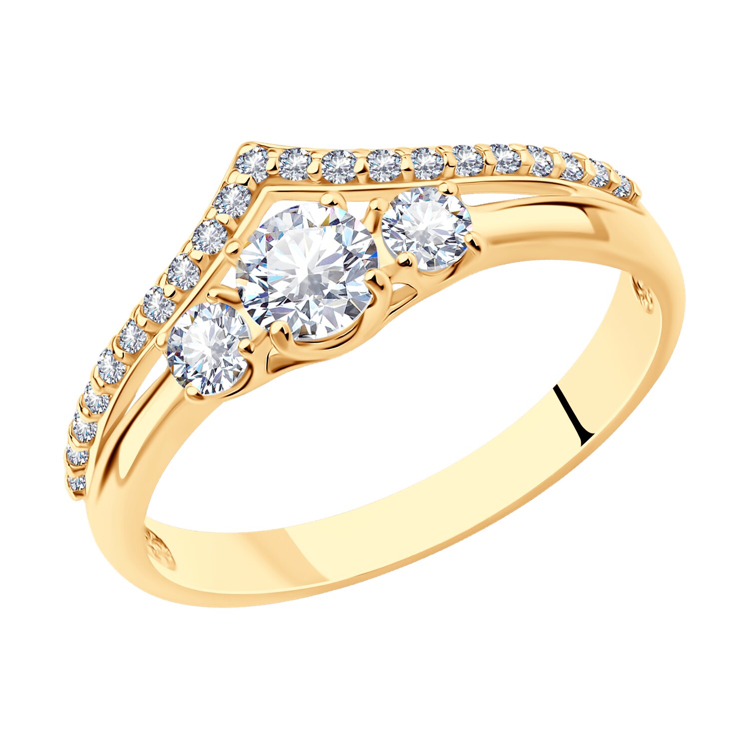 Кольцо из серебра с позолотой и фианитами