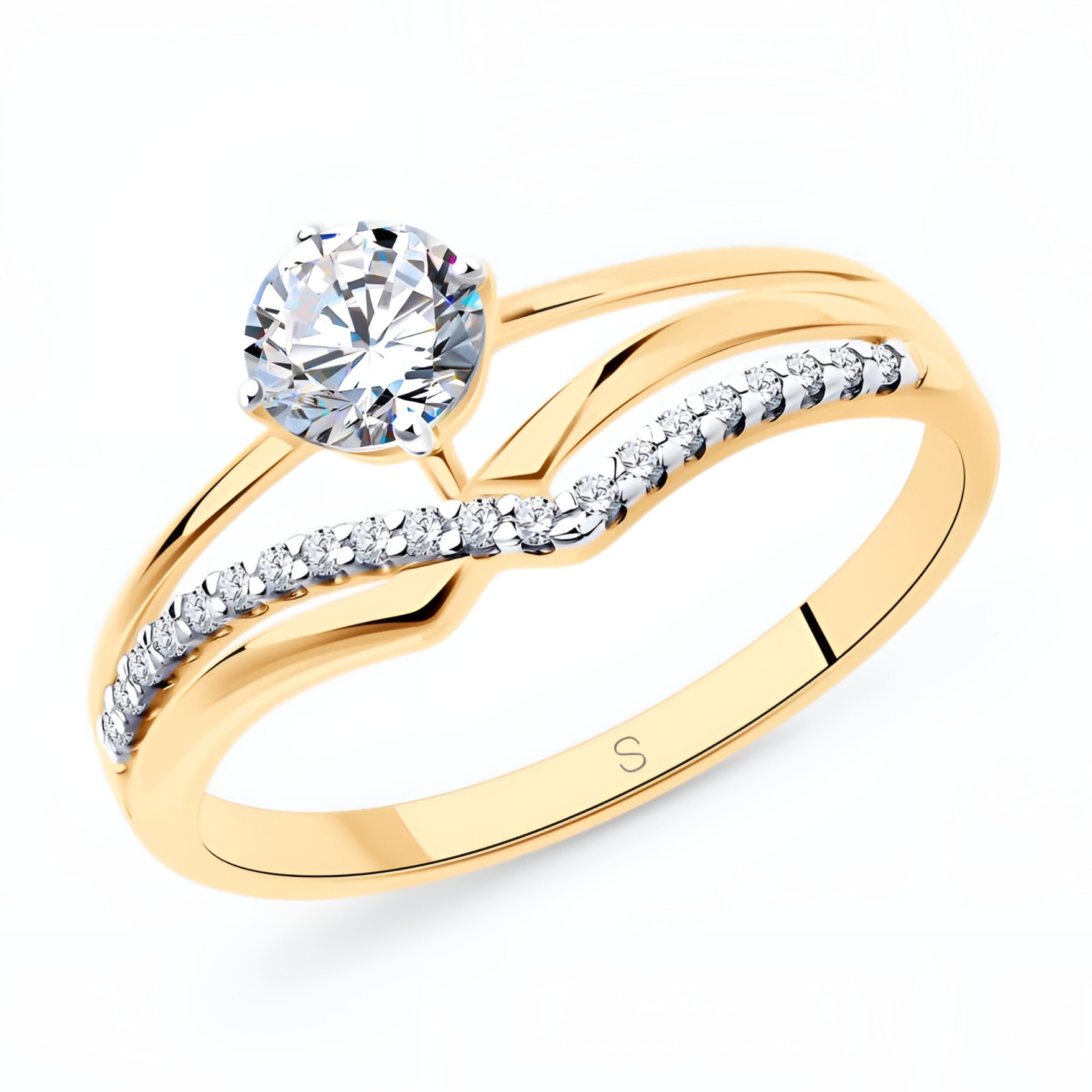 Кольцо из серебра с позолотой и фианитами