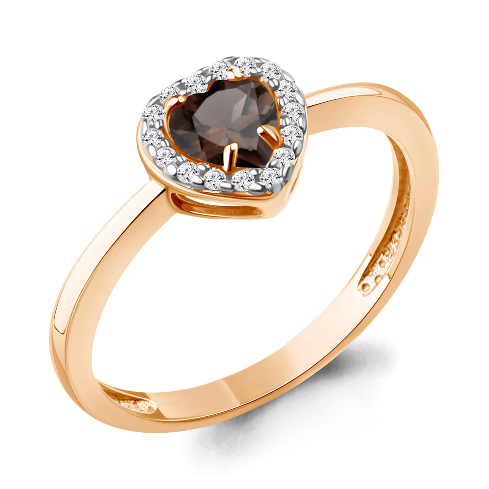 Кольцо из серебра с позолотой, раухтопазом и фианитами