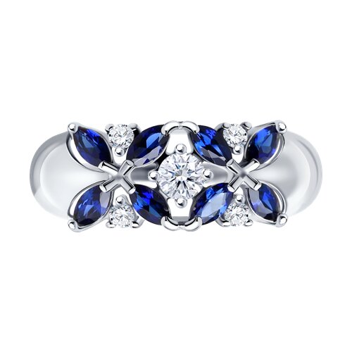 Кольцо из серебра с сапфировыми корундами и фианитами