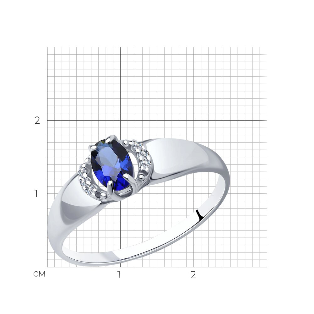 Кольцо из серебра с сапфировым корундом и фианитами