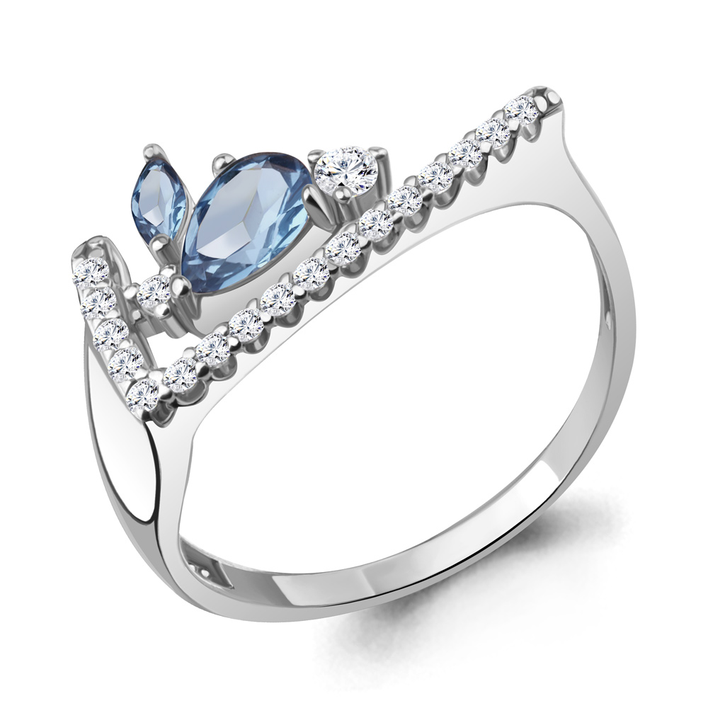 Кольцо из серебра с топазами Swiss и фианитами