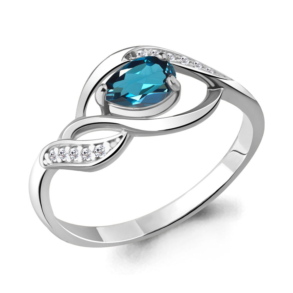 Кольцо из серебра с топазом London и фианитами