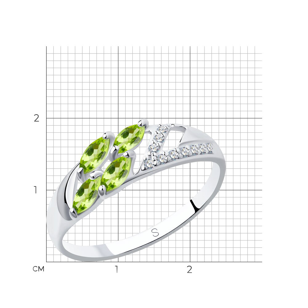 Кольцо из серебра с хризолитами и фианитами