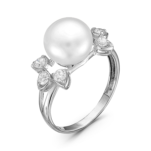 Кольцо из серебра с жемчугом и фианитами