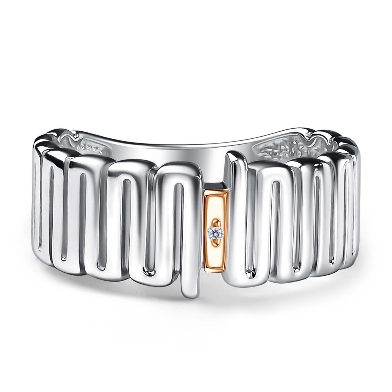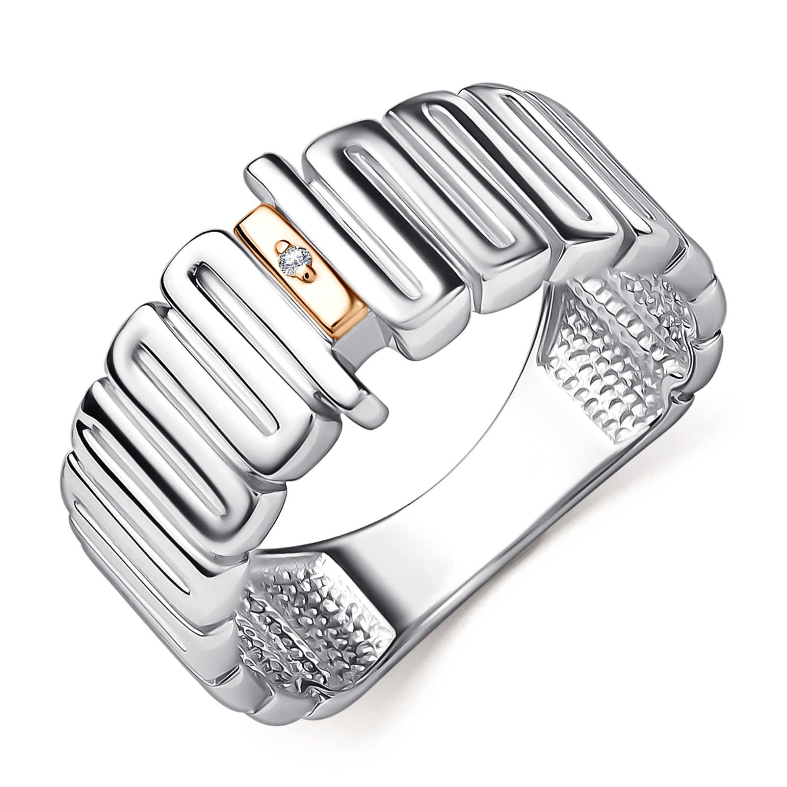 Кольцо из серебра с золотой вставкой и бриллиантом