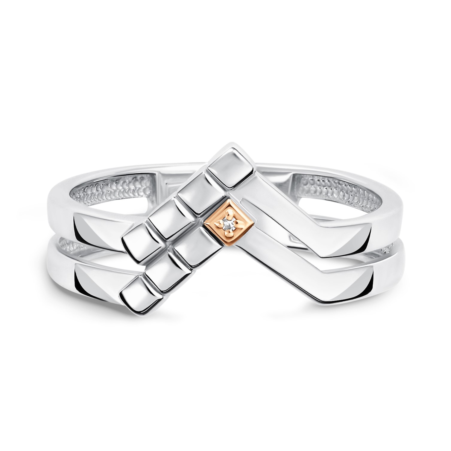 Кольцо из серебра с золотой вставкой и бриллиантом