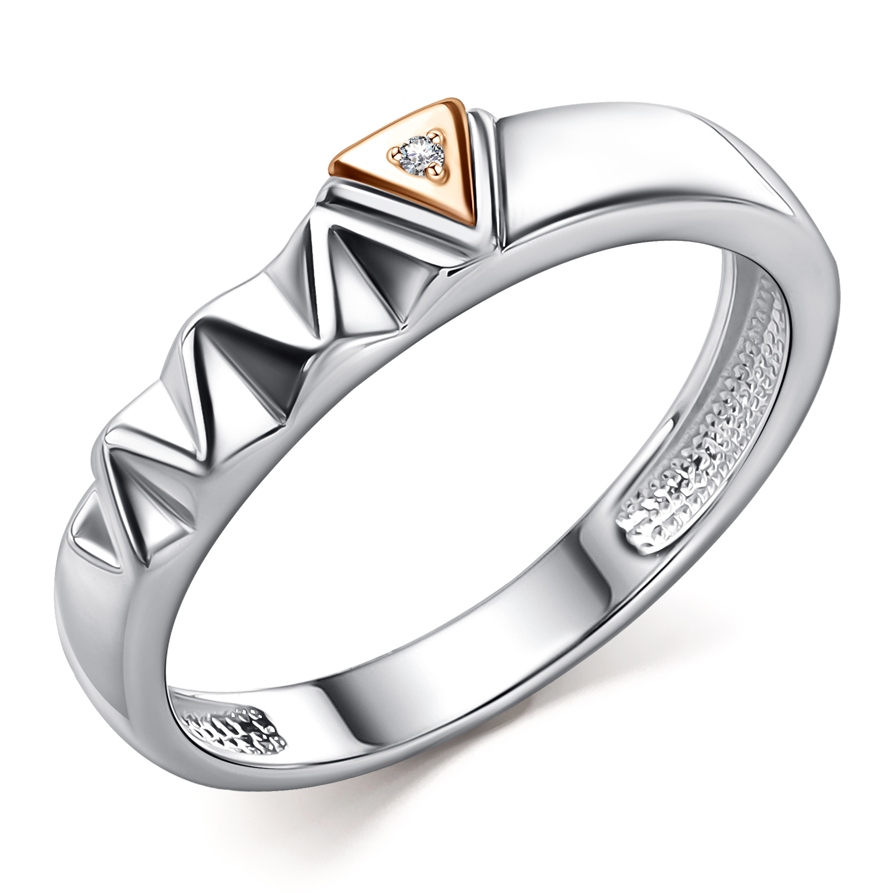 Кольцо из серебра с золотой вставкой и бриллиантом