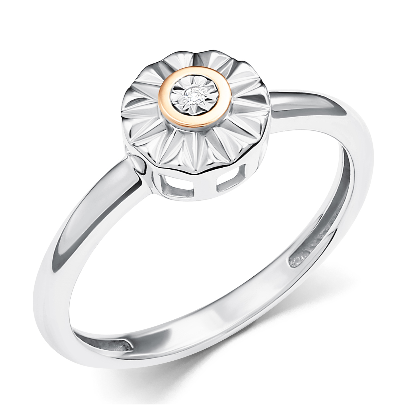Кольцо из серебра с золотой вставкой и бриллиантом