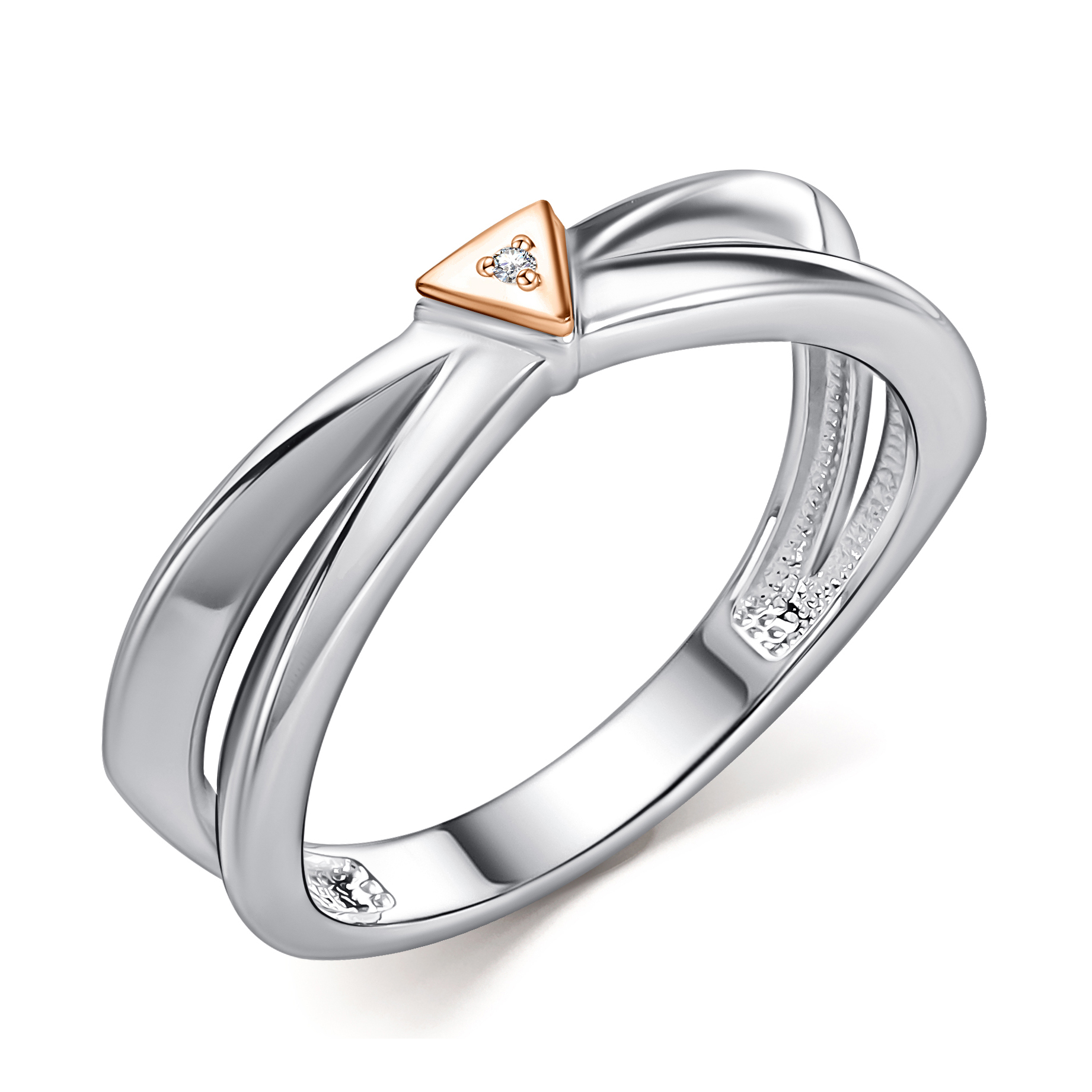 Кольцо из серебра с золотой вставкой и бриллиантом