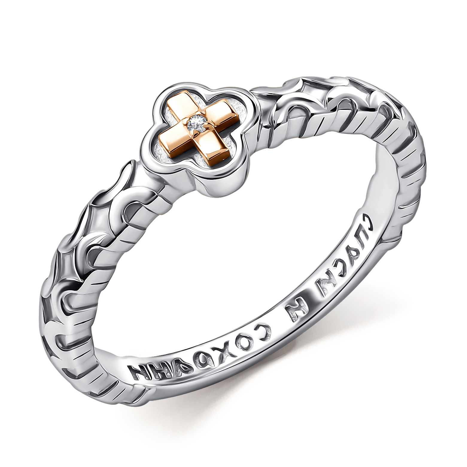Кольцо из серебра с золотой вставкой и бриллиантом