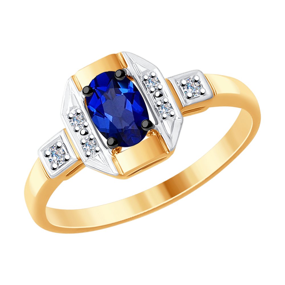 Кольцо из золота с бриллиантами и сапфировым корундом
