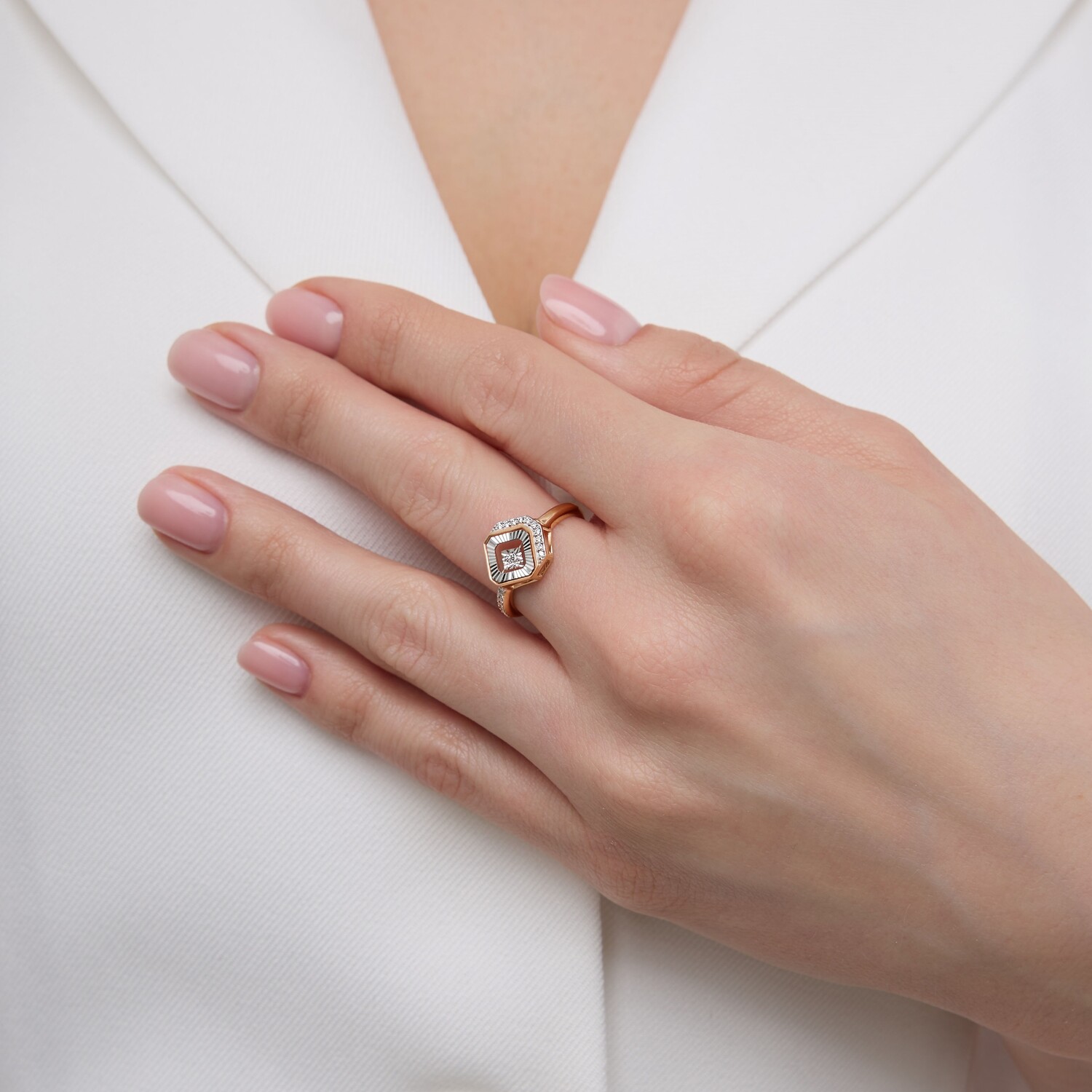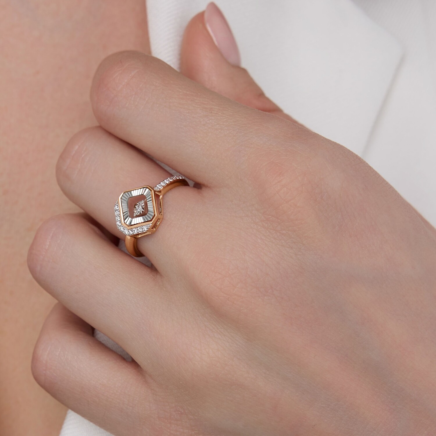 Кольцо из золота с бриллиантами и "танцующим" бриллиантом