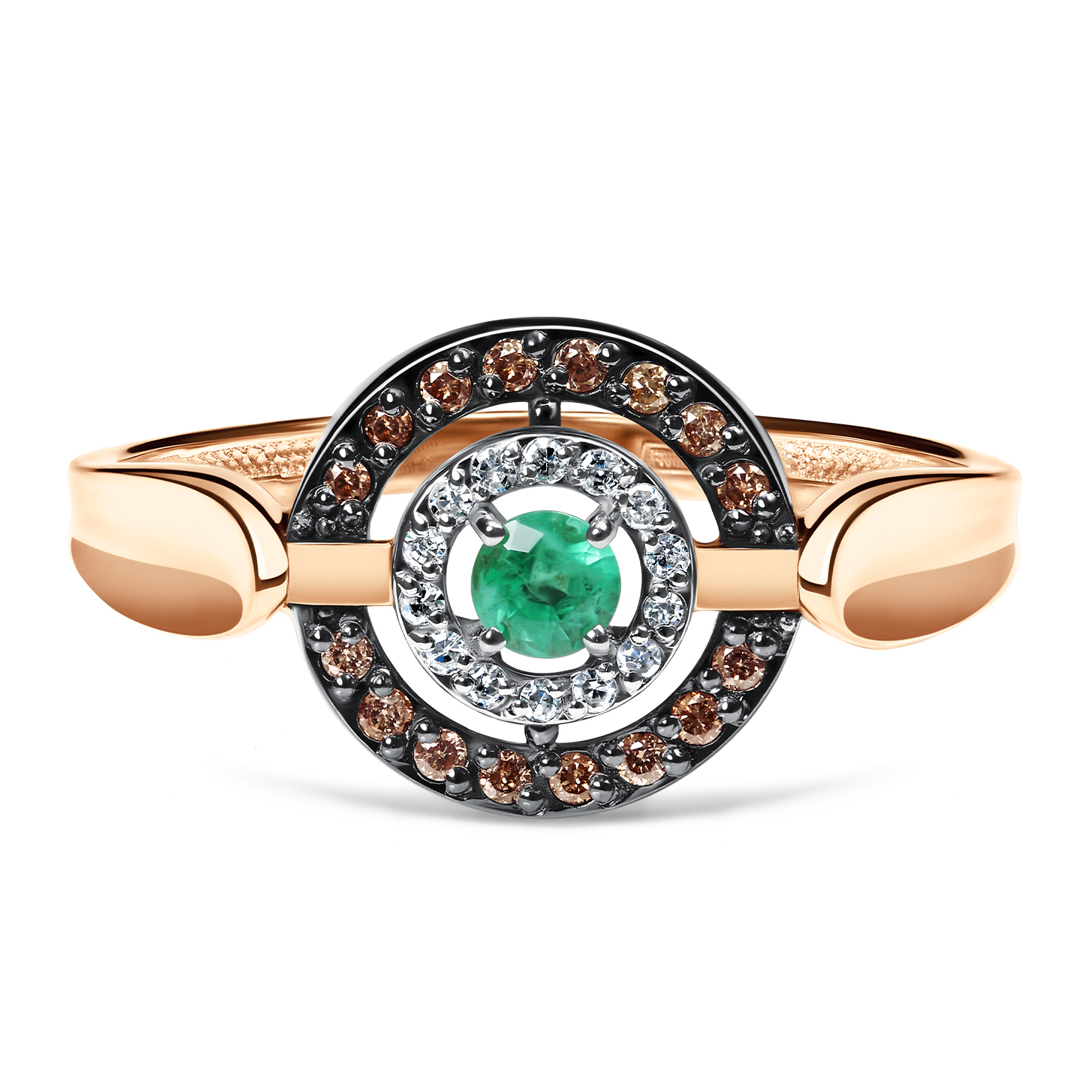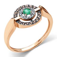 Кольцо из золота с бриллиантами, коньячными бриллиантами и изумрудом
