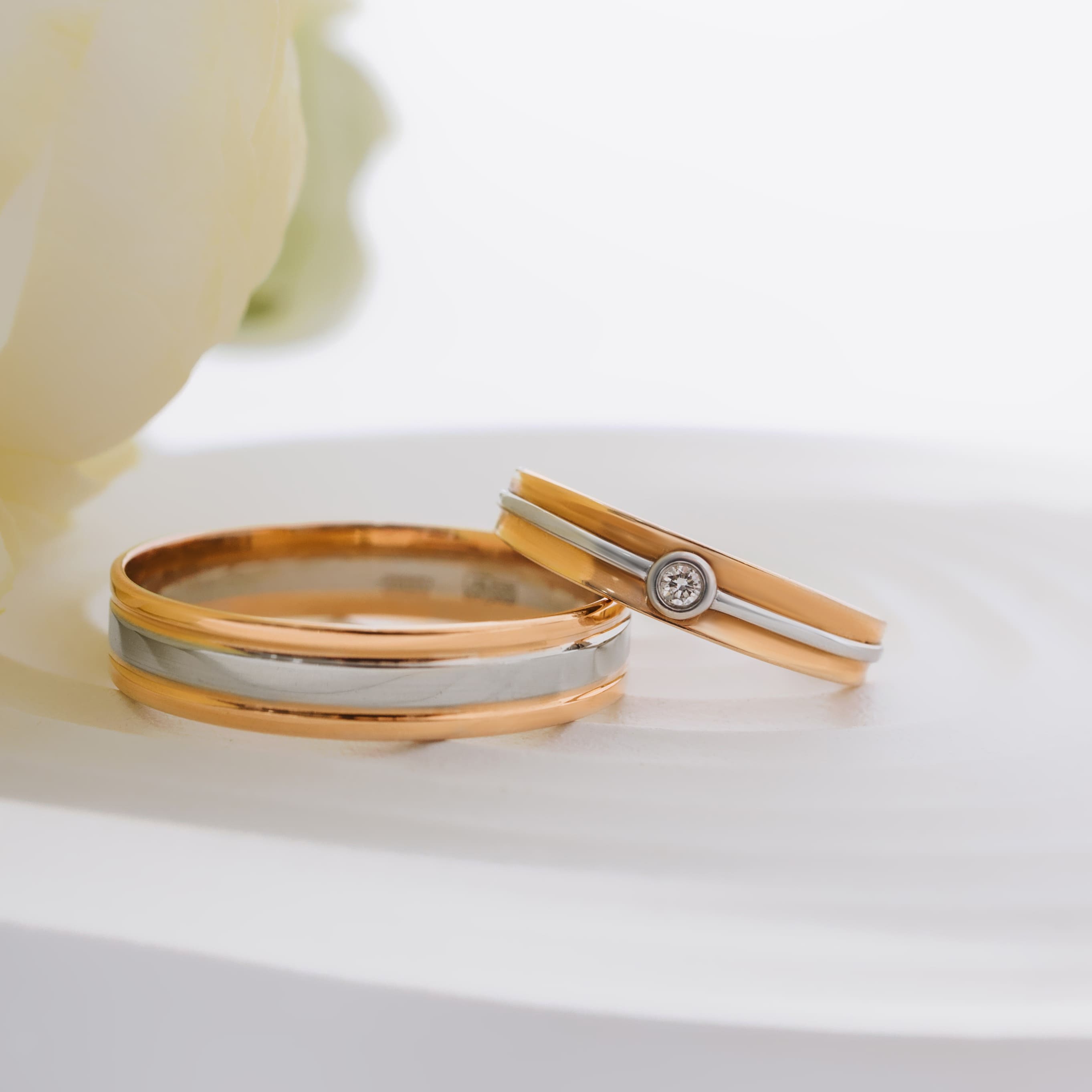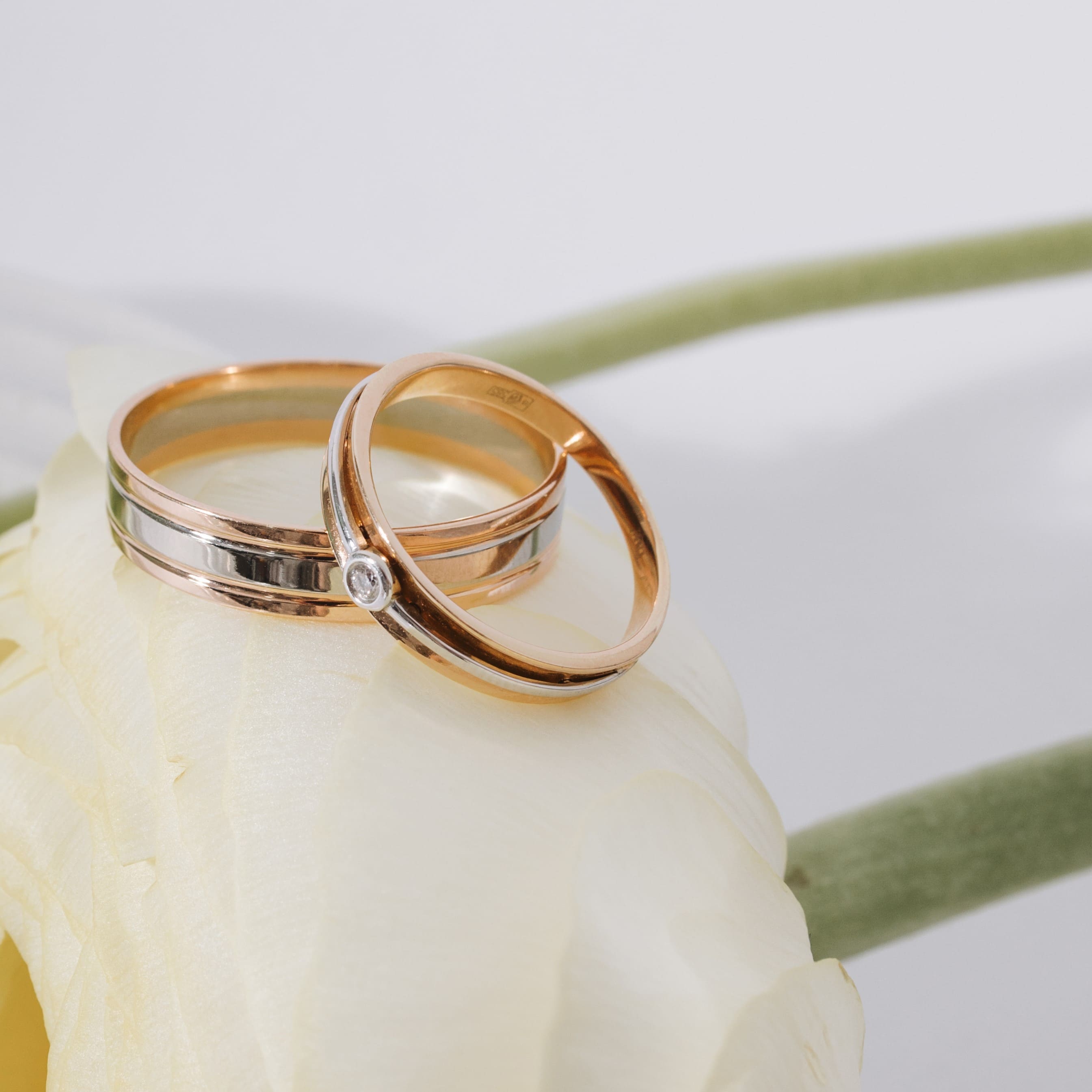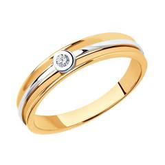 Обручальное кольцо из комбинированного золота с бриллиантом