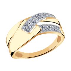 Кольцо из золота 585 проба с фианитами Ширина шинки в самом узком месте 2 мм Ширина декора 8 мм