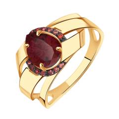 Кольцо из золота с гранатом и фианитами