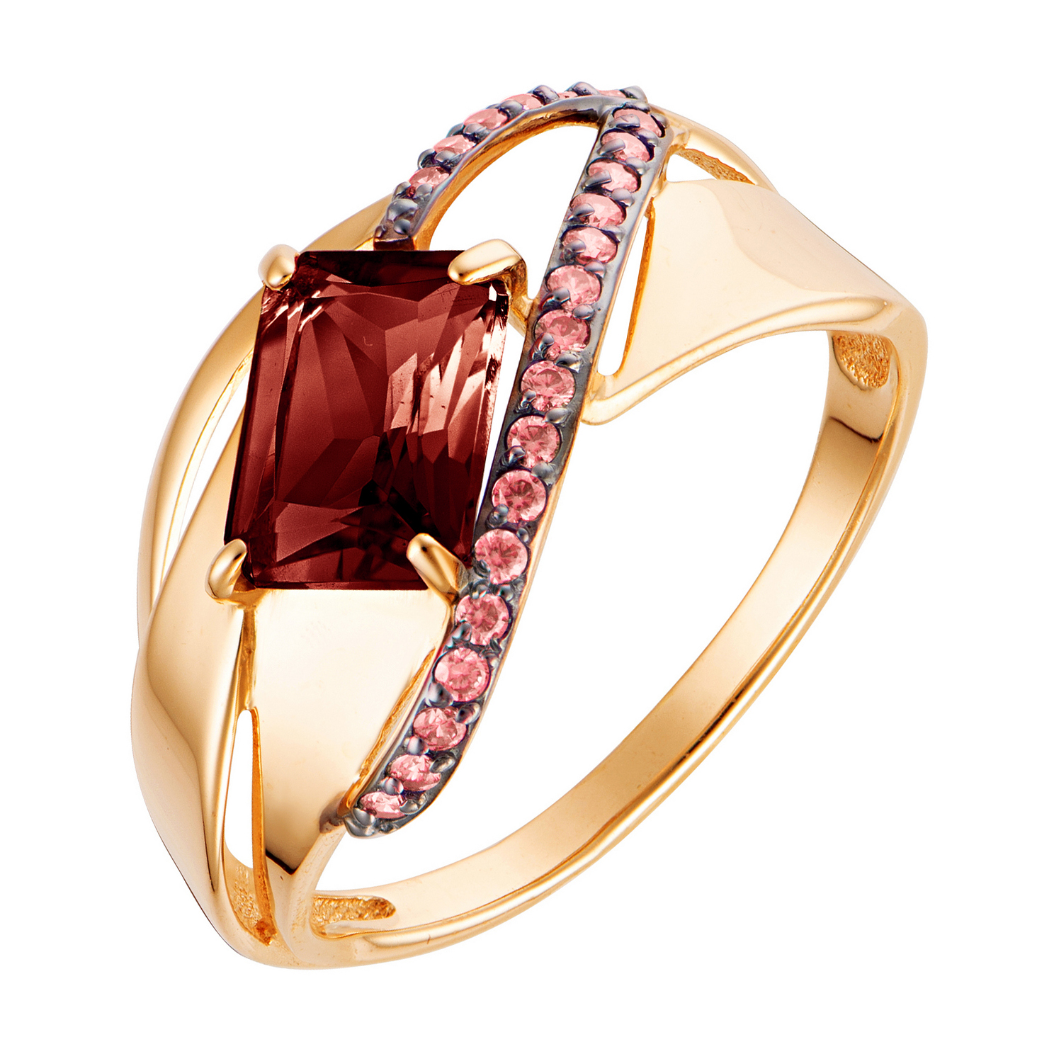 Кольцо из золота с гранатом и фианитами