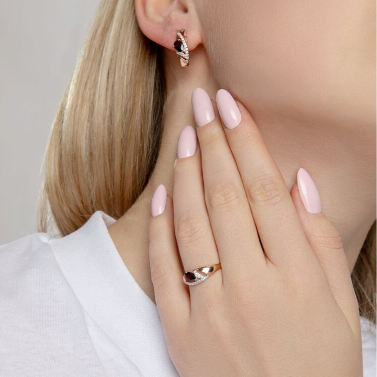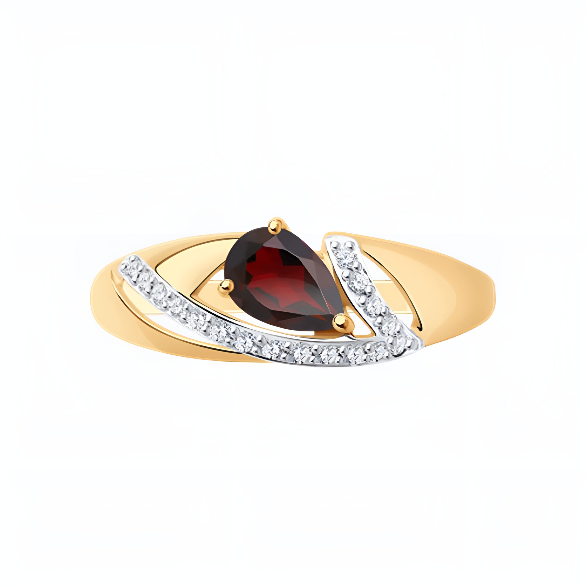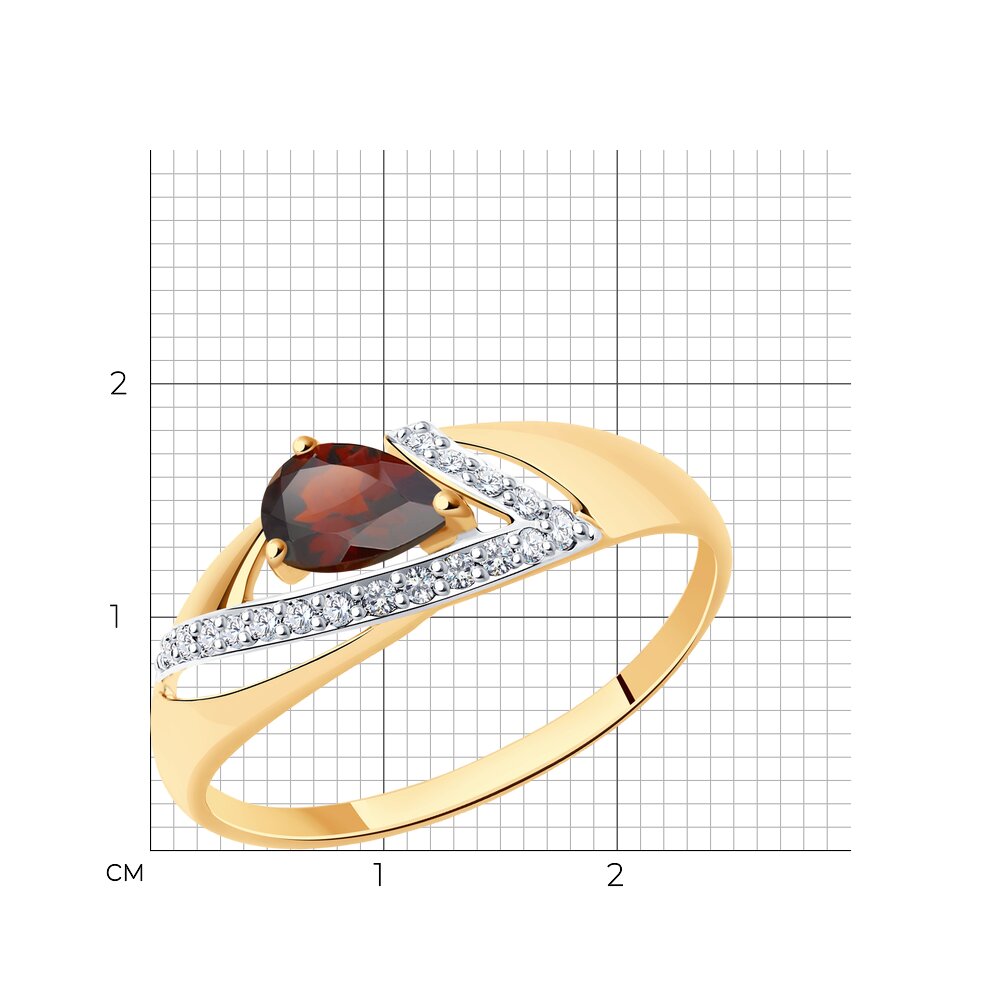 Кольцо из золота с гранатом и фианитами