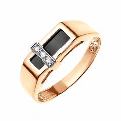 Кольцо-печатка из золота с ониксом и фианитами